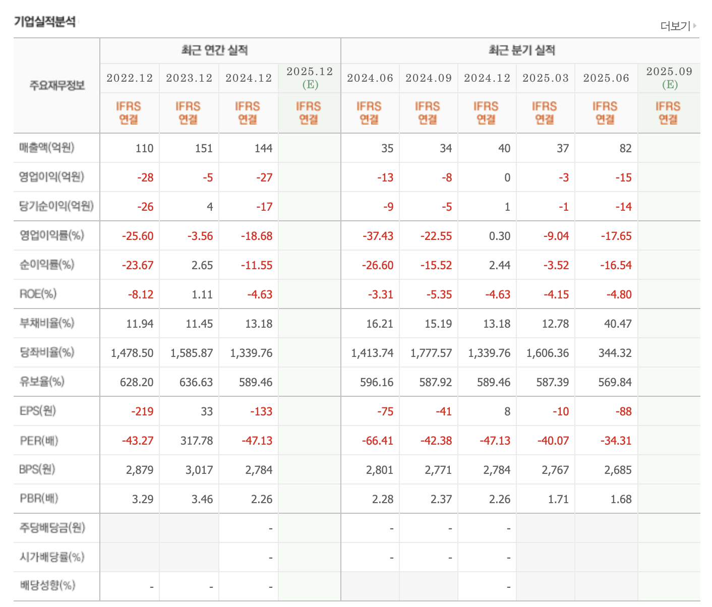 적자, 배당없음.