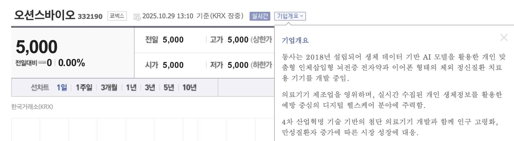 동사는 2018년 설립되어 생체 데이터 기반 AI 모델을 활용한 개인 맞춤형 인체삽입형 뇌전증 전자약과 이어폰 형태의 체외 정신질환 치료용 기기를 개발 중임.